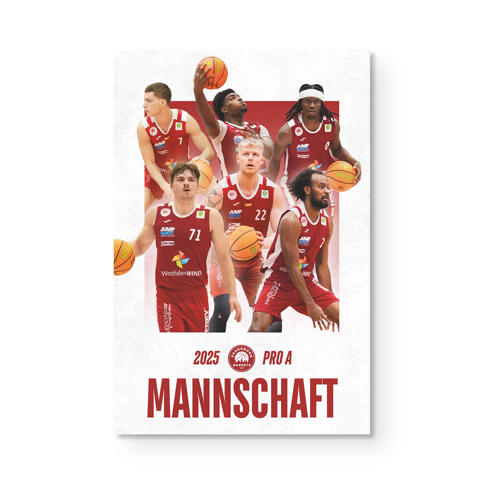 Dieses offizielle Mannschafts-Motiv 2025 zeigt eine Auswahl des aktuellen Baskets-Teams in einem cleanen, modernen Design. Reduziert, hochwertig und perfekt geeignet für deine Fan-Ecke, dein Büro oder dein Wohnzimmer.